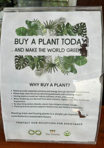 Gelukkig zijn sommige hotels al bezig met milieuvriendelijke initiatieven, reden waarom we ze graag uitkiezen. Zo zijn er hotels die bordjes aanbieden waarmee gasten kunnen aangeven dat het beddengoed niet dagelijks verschoond hoeft te worden. Dit bespaart niet alleen water en energie, maar vermindert ook de hoeveelheid wasmiddel en plasticverpakkingen die nodig zijn voor schoonmaakartikelen. Eén van onze hotels in Jaffna gaat nog een stap verder door een plantendonorprogramma aan te bieden. Gasten kunnen voor een klein bedrag een plant kopen; de inkomsten gaan naar het personeel en de plant wordt in de omgeving van het hotel geplant als de gast deze niet mee naar huis neemt. Dit draagt bij aan het vergroenen van de omgeving en het creëren van een schonere lucht.