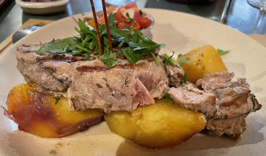 Op Terceira kregen wij in Angra do Heroísmo ook weer een paar restaurants als tip van onze lokale gids Tanja. We kozen voor het restaurant Tasca Das Tias. Toen ik het menu bekeek zag ik ook weer tonijnsteak staan en omdat het alweer een paar dagen geleden was, dacht ik: we gaan er weer voor! Deze steak was anders bereid, namelijk geen krokant laagje van sesamzaadjes, maar gewoon simpel gekruid. Ook deze variant was weer smikkelen.