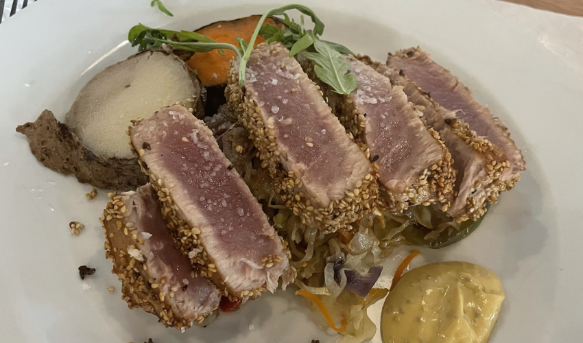 De Azoren liggen midden in de Atlantische Oceaan. Niet geheel verrassend dat je hier dan ook veel verse visgerechten kunt krijgen. Een daarvan is verse tonijn, die ik zowel op het eiland São Miguel als op het eiland Terceira heb geproefd.